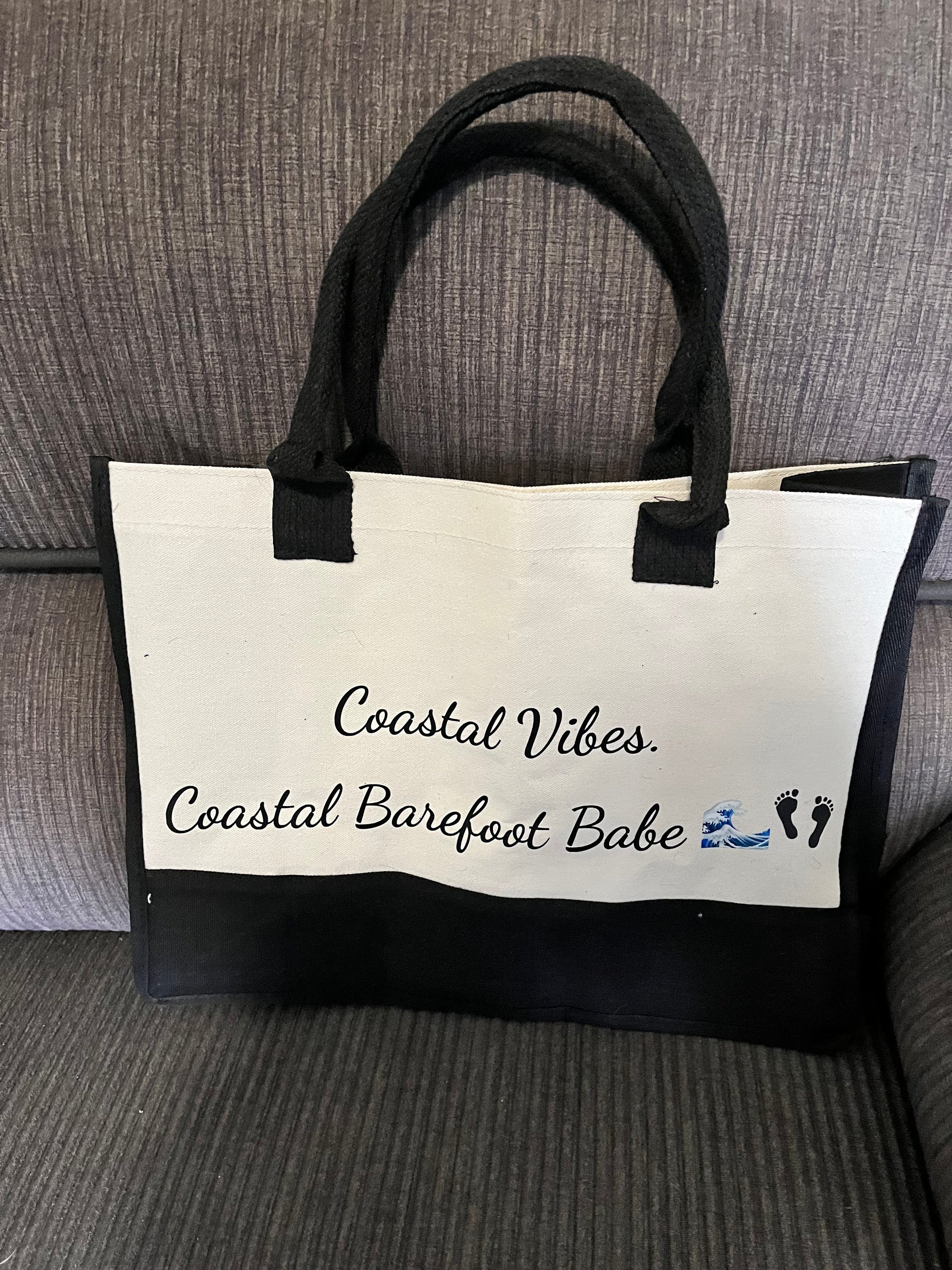 “Coastal Vibes. Coastal Barefoot Babe” Canvas Tote Bag|Beach Life Shopper | Ocean Soul Essentials Carry all